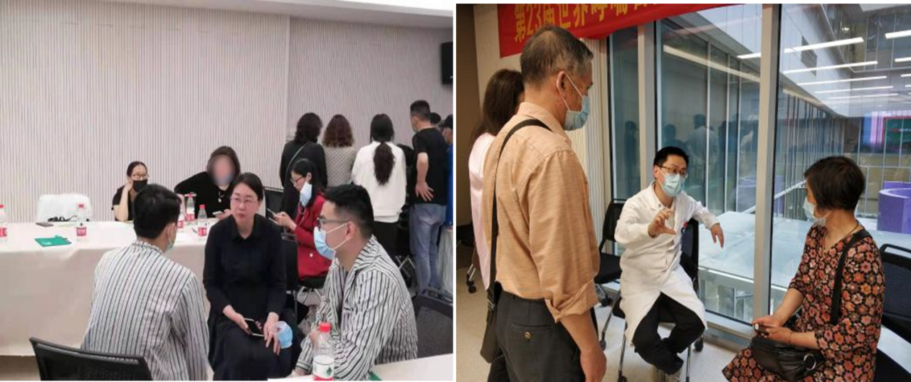 紧接着,郭强副院长、蒋军红主任、曾大雄副主任三位专家教授分别以哮喘的表现、相关检查和如何减少哮喘发作分享了哮喘知识,进行科普宣教。活动中,医务人员为患者免费进行血糖、血压测量及呼出气一氧化氮(FeNO)检测。专家根据检测结果,对每一位患者进行耐心细致的解答。