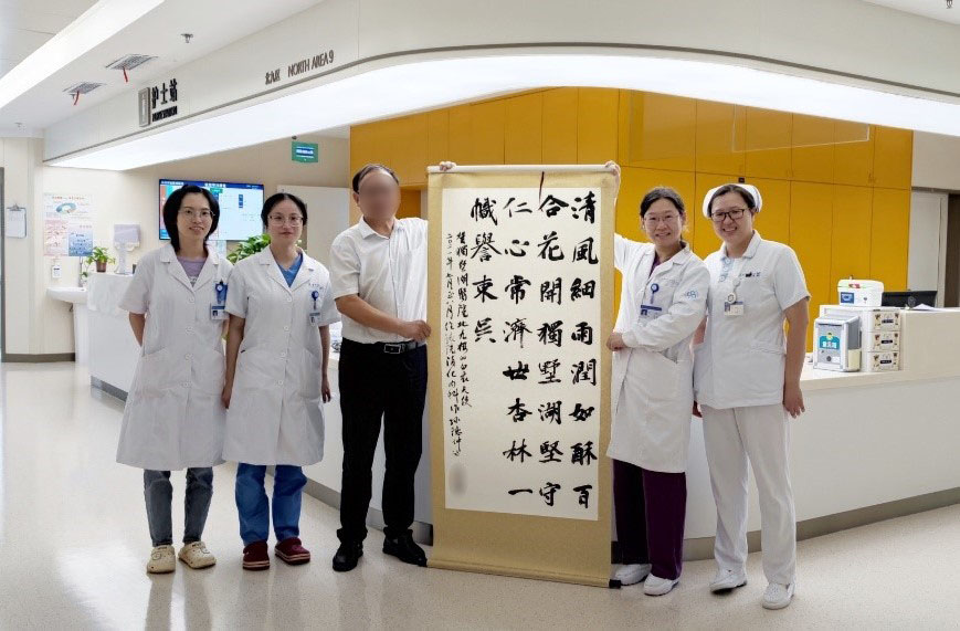 孙先生出院后,为医护人员赋诗一首并精心装裱,以表达对消化内科医护服务和技术的肯定和感谢。