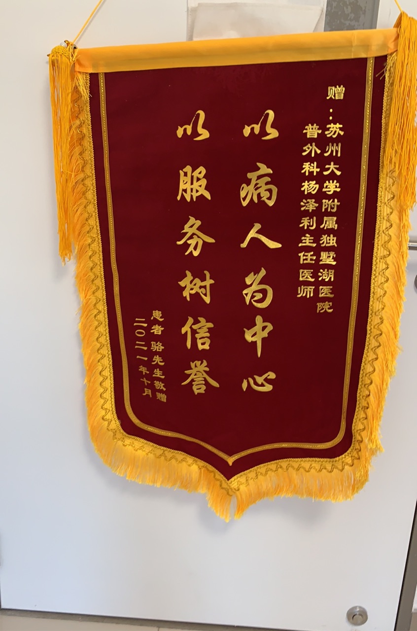 患者骆先生赠送锦旗感谢我院普外科杨泽利主任医师