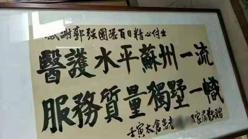 出院后,杨老先生一家人特别感激郭强副院长团队百日的精心付出,挥墨一幅,给予了“医护水平苏州一流,服务质量独墅一帜”的评价致敬团队。家属和病人的信任是我们前进的动力,值此疫情防控要紧关头,我们必将砥砺前行,为大家的健康继续保驾护航。