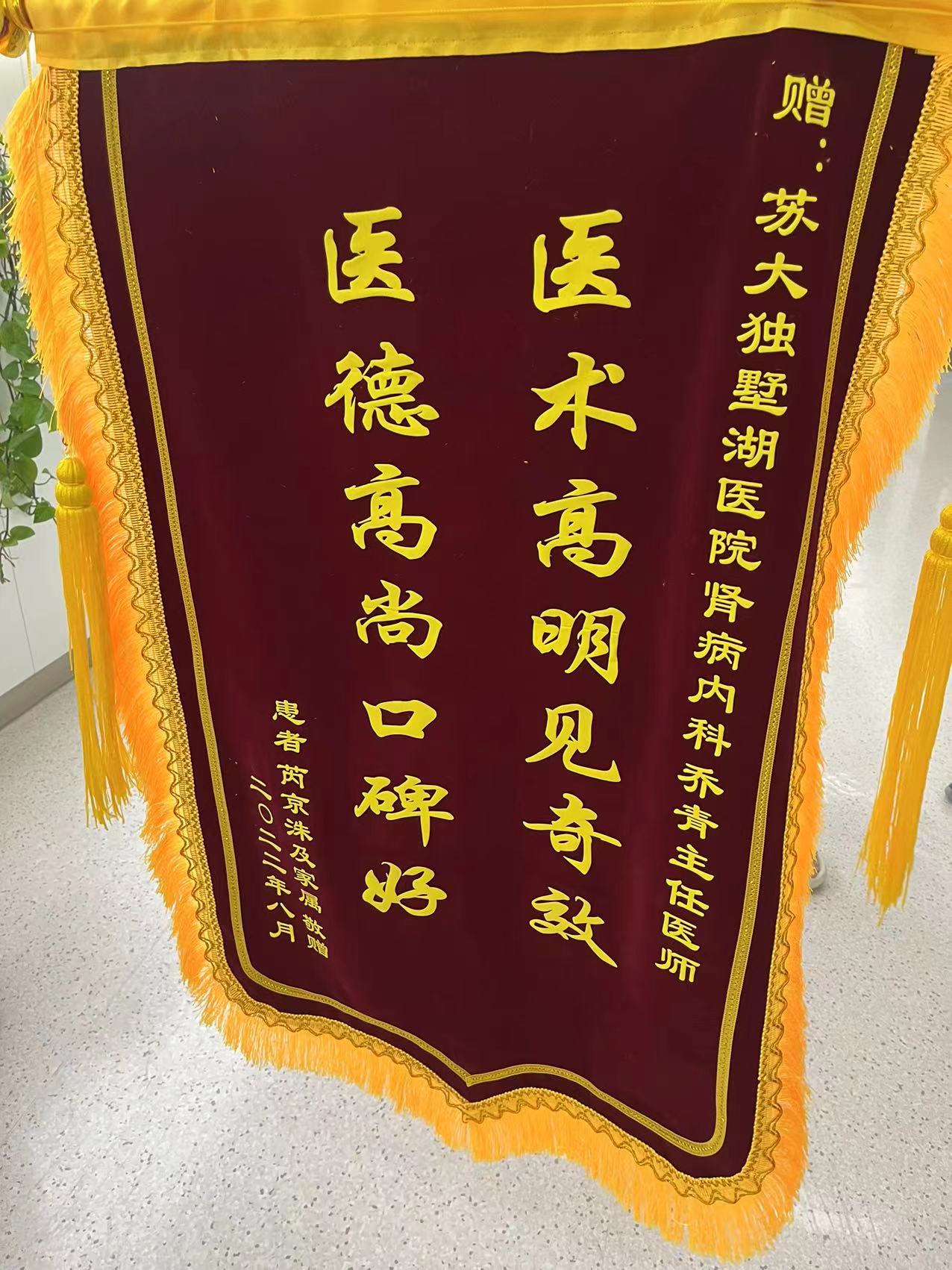 患者芮女士及家属赠送锦旗感谢我院肾内科乔青主任