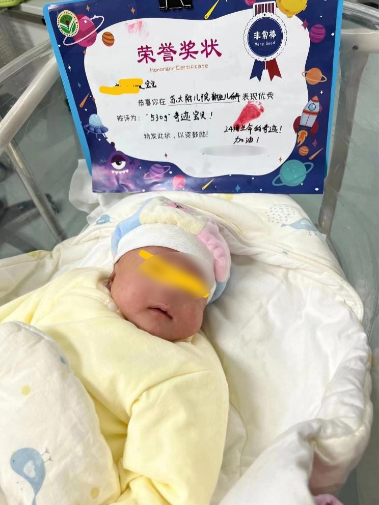 苏州大学附属独墅湖医院妇产科与苏州大学附属儿童医院联手成功救治了一名24周530g极低体重儿。新生儿于2022年10月20日顺利出院,出院时体重3kg,各项指标均正常,这也创造了苏州新记录!