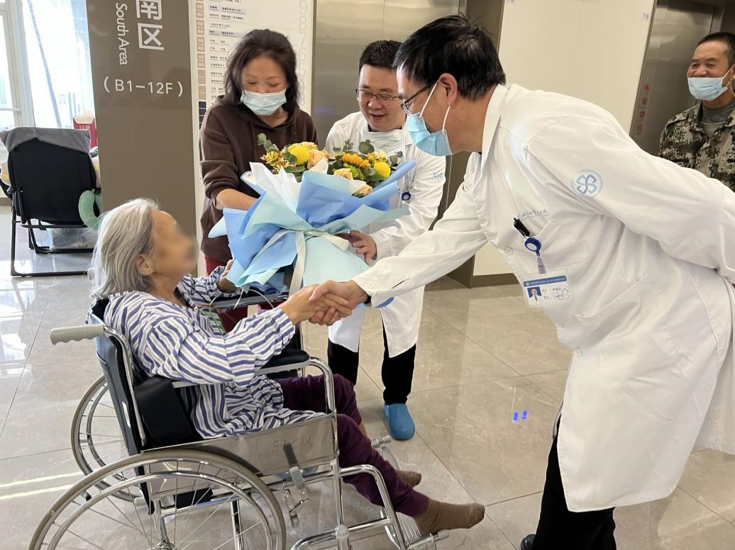近日,98岁的王阿婆不慎摔伤,造成右侧股骨粗隆间骨折,苏大附属独墅湖医院急诊ICU团队联合骨科、麻醉科多学科,在谨慎评估患者骨折情况、心肺功能、全身营养状况后,于全麻下行右侧股骨内固定术。王阿婆恢复情况良好,术后一周后出院。