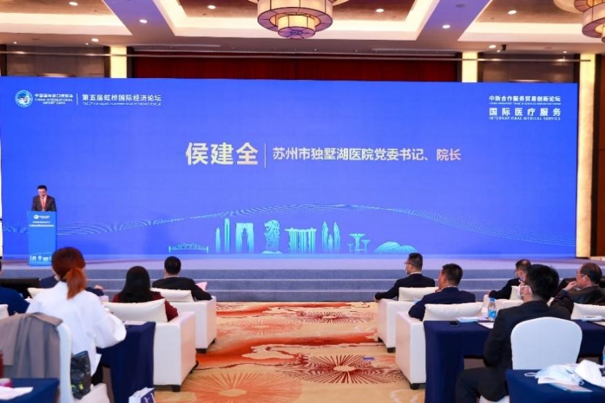 侯建全院长向各位参会领导和嘉宾简要回顾了独墅湖医院开业20个月来所取得的成绩,并表示独墅湖医院始终把国际化作为自身发展的重要战略,把国际医疗服务作为与苏州市内其他医院差异化发展的着力点,把国际医疗服务能力建设作为医院学科建设和人才队伍培养的重要抓手,努力将医院打造成园区乃至苏州市深化国际合作的展示窗口,期待通过这次论坛的交流,为独墅湖医院的国际化发展碰撞出新思路,擦出新火花。