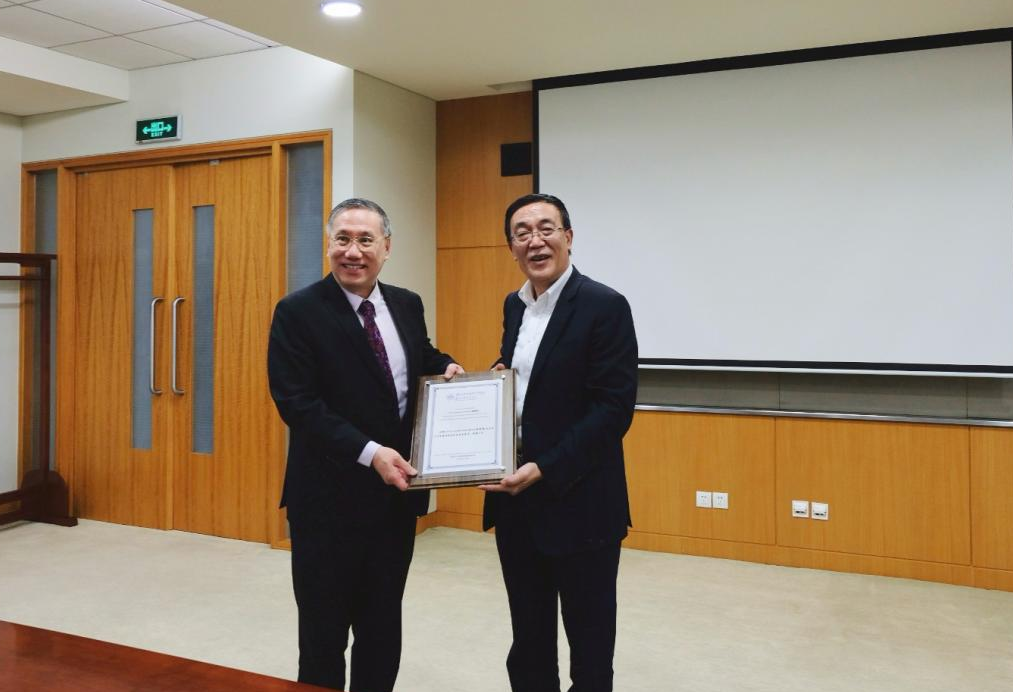 侯建全书记为郭瑞财教授颁发客座教授聘书
