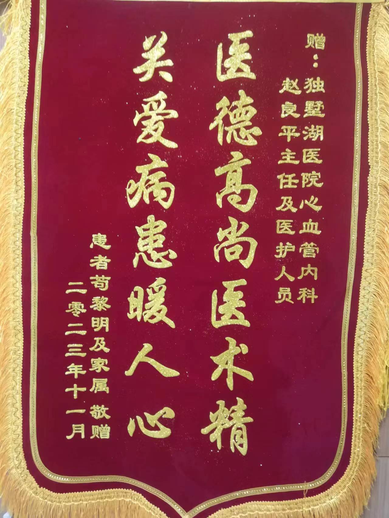 患者苟先生及家属赠送锦旗感谢我院心内科赵良平副主任及全体医护