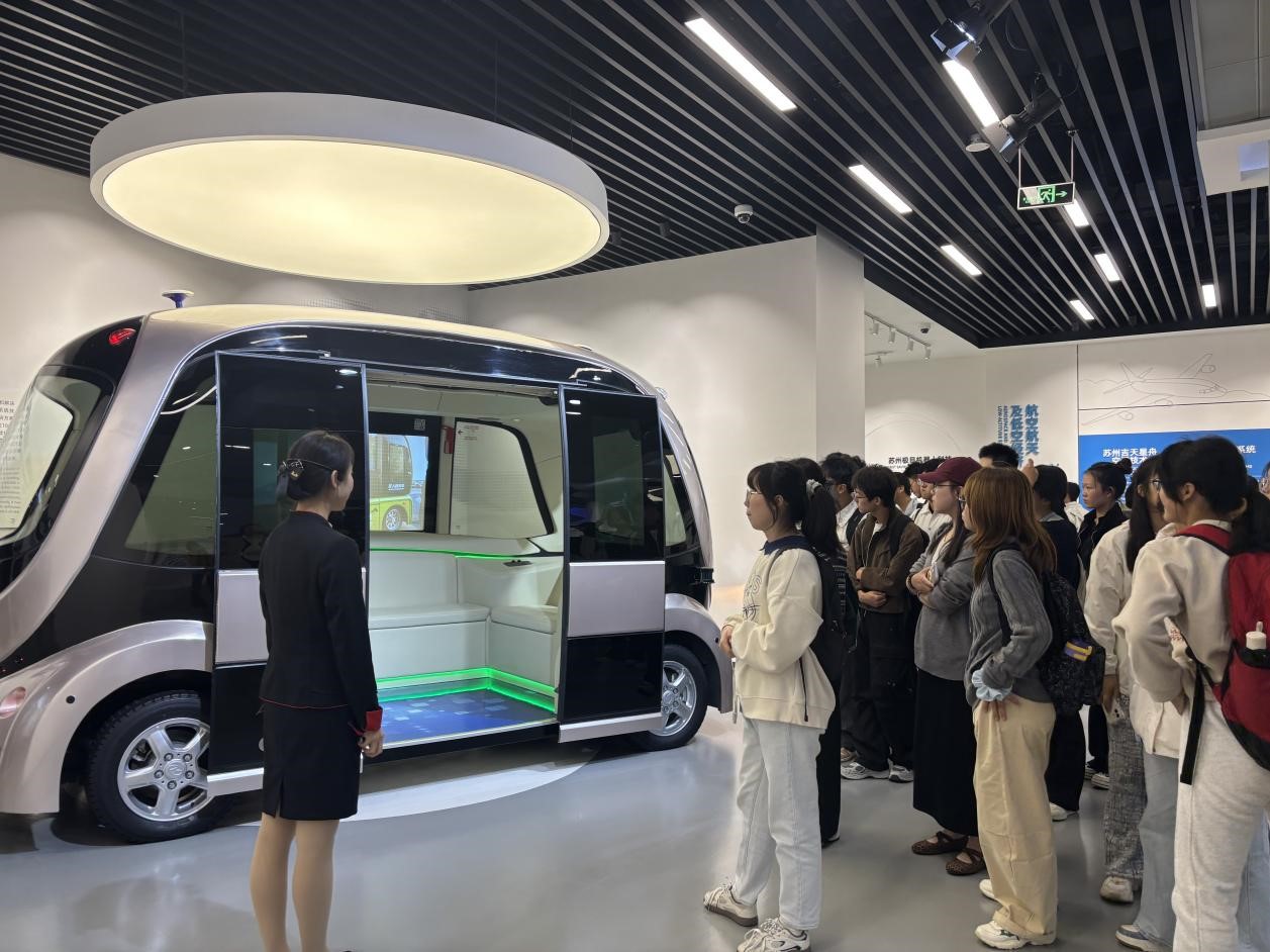 展区共有两层,一层展区展示苏州工业园区在党建引领下取得的卓越成就;二层产业展区展示建设世界一流高科技产业园区。展区分为生物医药、纳米技术应用、人工智能等六个主题,在讲解员的引领下,学生们感受到了科技的力量以及园区在高科技产业领域的蓬勃发展。生动的实物展品令学生们惊叹不已,纷纷表示对未来在医学领域的科研和创新有了更高的期待。