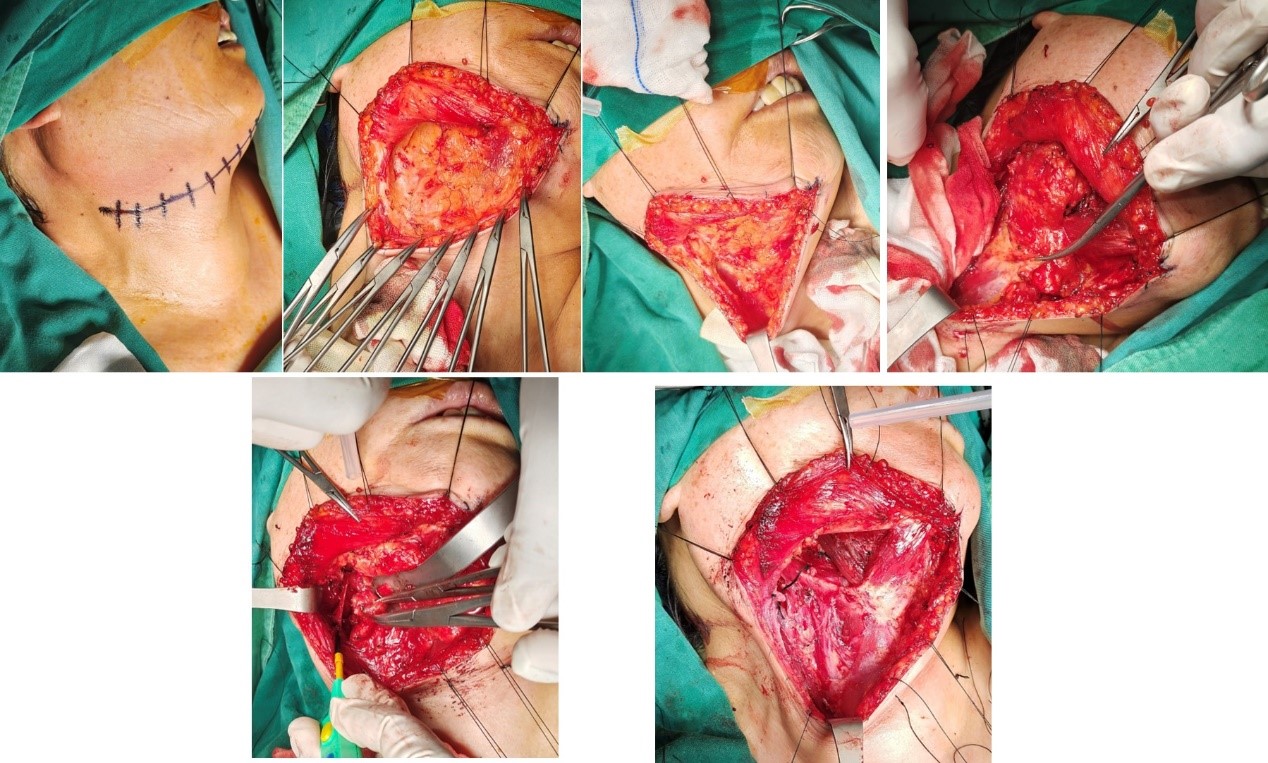 术中,口腔科唐子春副主任医师团队精准完成肿瘤扩大切除与颈淋巴清扫,在保留重要神经血管的前提下,为修复预留最佳条件,术中全程出血仅约100ml。