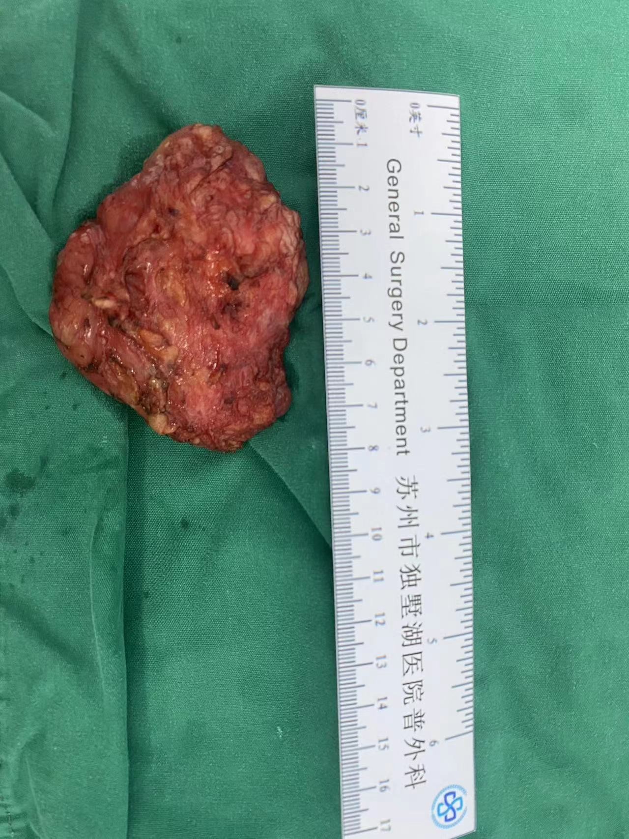 张主任另辟蹊径,决定对她实施经外侧腋窝切口的腔镜辅助下的乳房肿块切除术,以最大程度缩小创口,这样既避免了巨大手术切口的丑陋,又实现了乳房大肿瘤的完整切除。
