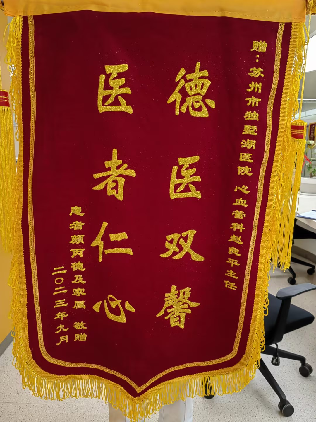 患者颜先生及家属赠送锦旗感谢我院心内科赵良平主任医师