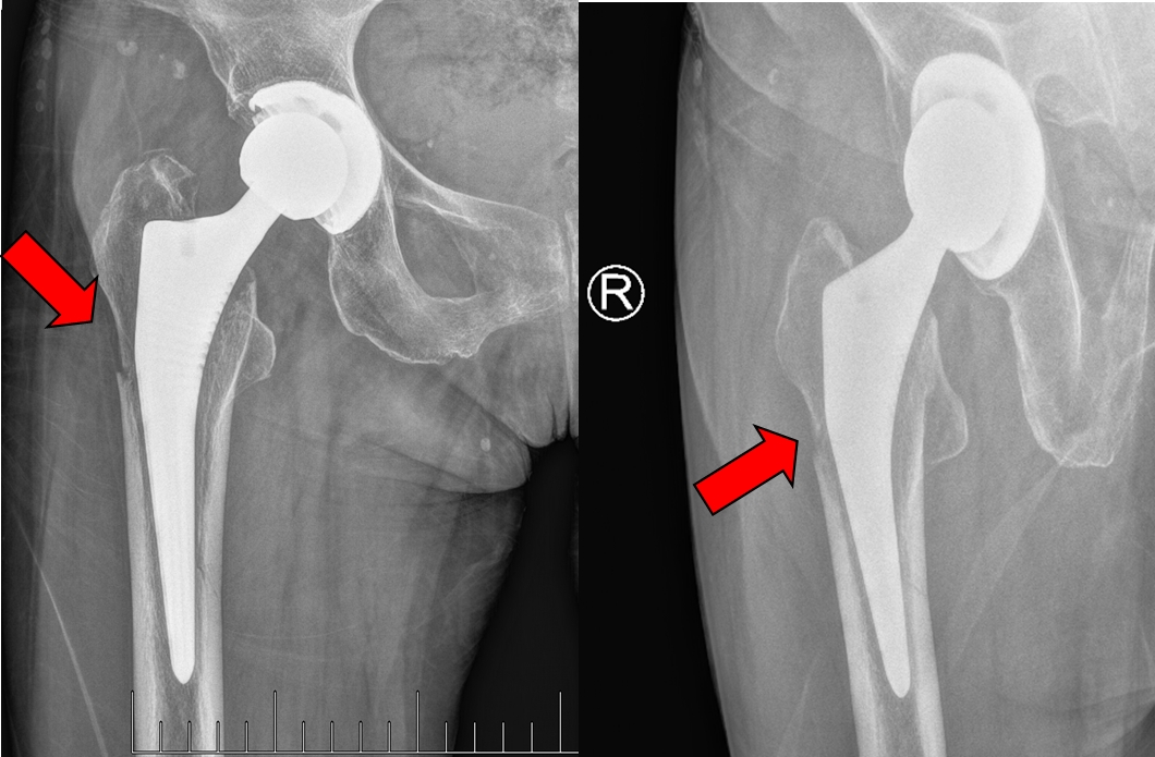 然而在2025年春节期间,王女士在商场搭乘手扶电梯时不慎摔倒,出现右髋疼痛,肢体活动受限,家属陪同王女士再次来到苏大附四院就诊,检查结果显示王女士此次外伤导致了右侧髋关节假体周围骨折,且假体已经松动。此类关节置换术后的假体周围骨折伴松动是骨科公认的棘手难题,要解决这个难题的最佳办法是施行翻修手术。与初次手术不同,翻修手术难度与术后并发症的发生率都要高得多。姜为民主任和林俊主任对患者王女士此次髋关节翻修手术十分重视,与杨小海主任一同进行了术前的讨论,制定了详细的手术方案。手术当天,在麻醉手术科的积极配合下,杨小海主任团队顺利完成了本例髋关节翻修术。