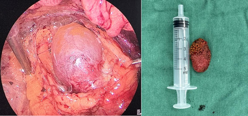 该例患者2年来出现右腰部反复疼痛,伴尿频尿急尿痛、肉眼血尿。来我院前曾经在外院检查B超提示右肾结石,选择进行保守治疗并定期复查。近期患者再发右腰部疼痛来我院就诊,B超检查提示:右肾结石,右肾囊肿。尿常规检查提示:白细胞:1332/ul,予以口服抗生素治疗1周后收住入院。入院后进一步完善相关检查,CT检查提示:右肾结石,大小约3.1x1.8cm,右肾囊肿大小约5.0x3.5cm,复查尿常规:白细胞:191/ul。浦金贤主任带领科室成员仔细阅片后指出,患者结石位于肾盂输尿管连接处,负荷较大,且尿常规检查显示白细胞较高,考虑结石伴发感染可能性大,需严格控制感染,术中应注意肾盂内压力,减少术后严重感染风险。同时,患者右肾囊肿体积较大,可以考虑同次手术一并处理。根据患者病情特点,周守军主任采用腹腔镜微创手术的方式,一期手术同时行腹腔镜肾盂切开取石和腹腔镜肾囊肿去顶术,将结石完整取出、肾囊肿去顶减压,一次手术解决两个问题。患者术后迅速康复,未出现发热、尿瘘等并发症,顺利出院。