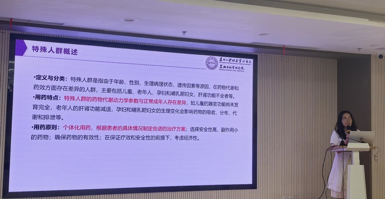 8月11日,我院医务处与科教处联合主办的“青年医师临床技能提升”系列培训第十三场顺利举办。本次讲座聚焦“特殊人群用药安全与规范”主题,由药学部毛娇娇副主任药师主讲,旨在进一步强化我院青年医师对特殊人群用药安全的认知,提升临床合理用药水平。
