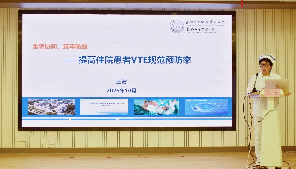 护理部王洁主任以“全院协同 筑牢防线——提高住院患者静脉血栓栓塞症规范预防率”为题,紧扣国家政策、《三级医院评审标准》及《全国VTE防治能力建设》要求,通过数据与案例,深刻阐述VTE防治的紧迫性与重要性。她结合院内VTE防治现状,系统解读VTE从风险评估到质量管控的全流程执行策略,并展示关键成效数据,号召全院凝聚合力,推动血栓防治工作全面升级,为患者生命健康筑牢坚实防线!