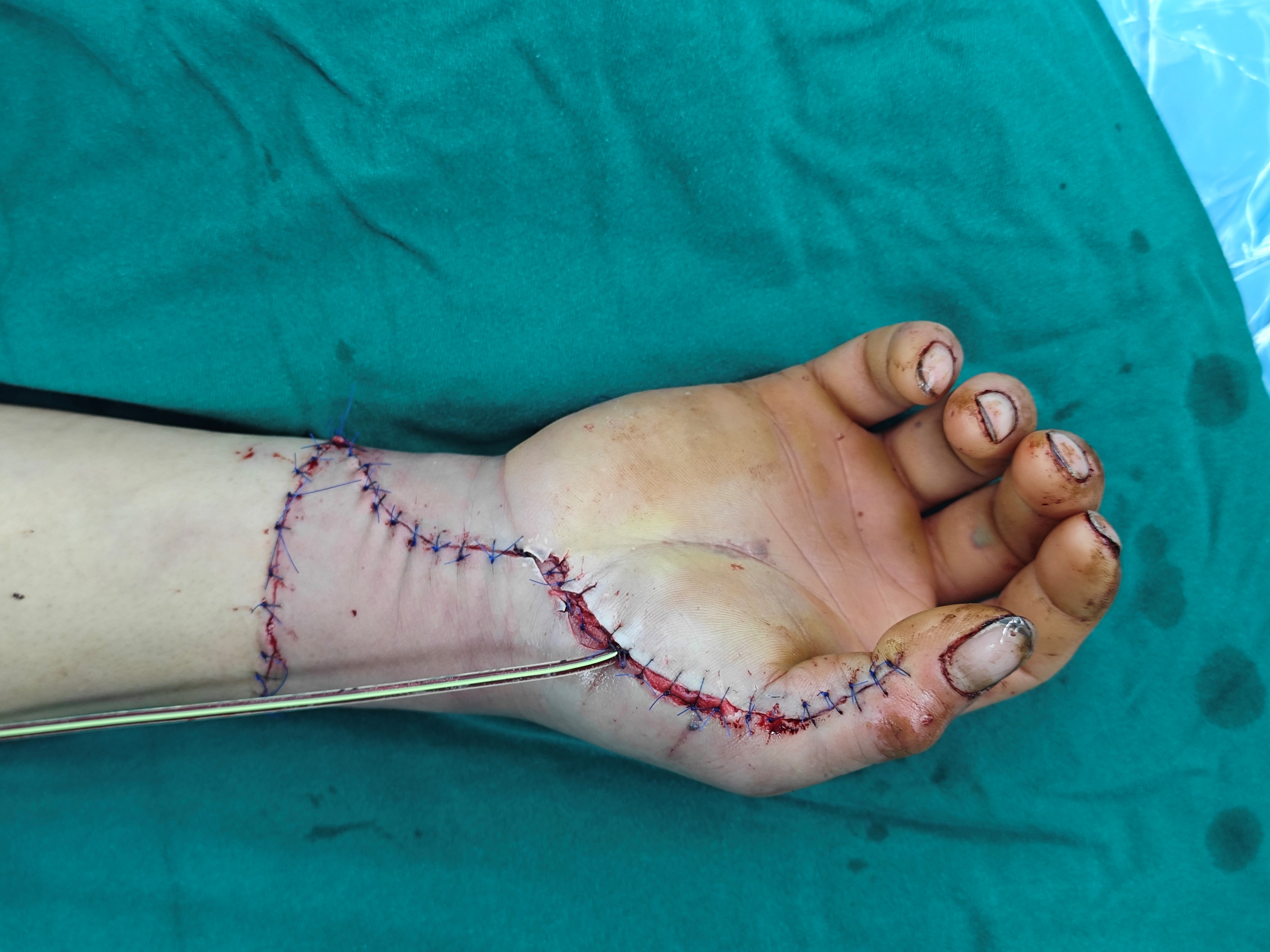 术后,科室为患者制定了严密的“三抗”治疗方案(抗凝血、抗痉挛、抗感染),医护团队24小时密切监测患者手部血运情况。经过精心护理,患者目前右上肢脱套组织血运、撕脱皮肤成活均良好,手指血运正常。现已逐步开展康复锻炼,帮助手部功能进一步恢复。