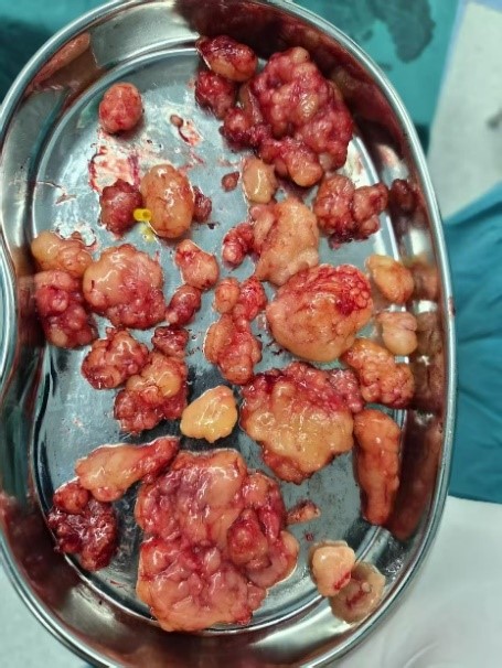 另有一例全身多发脂肪瘤患者提出“多切除一些”的诉求,整形外科团队未贸然应允,而是先对患者身体状况、肿物分布进行全面评估与精细规划。在牢牢守住手术安全底线的前提下,参考患者提出的需求,将脂肪瘤基本切除干净。