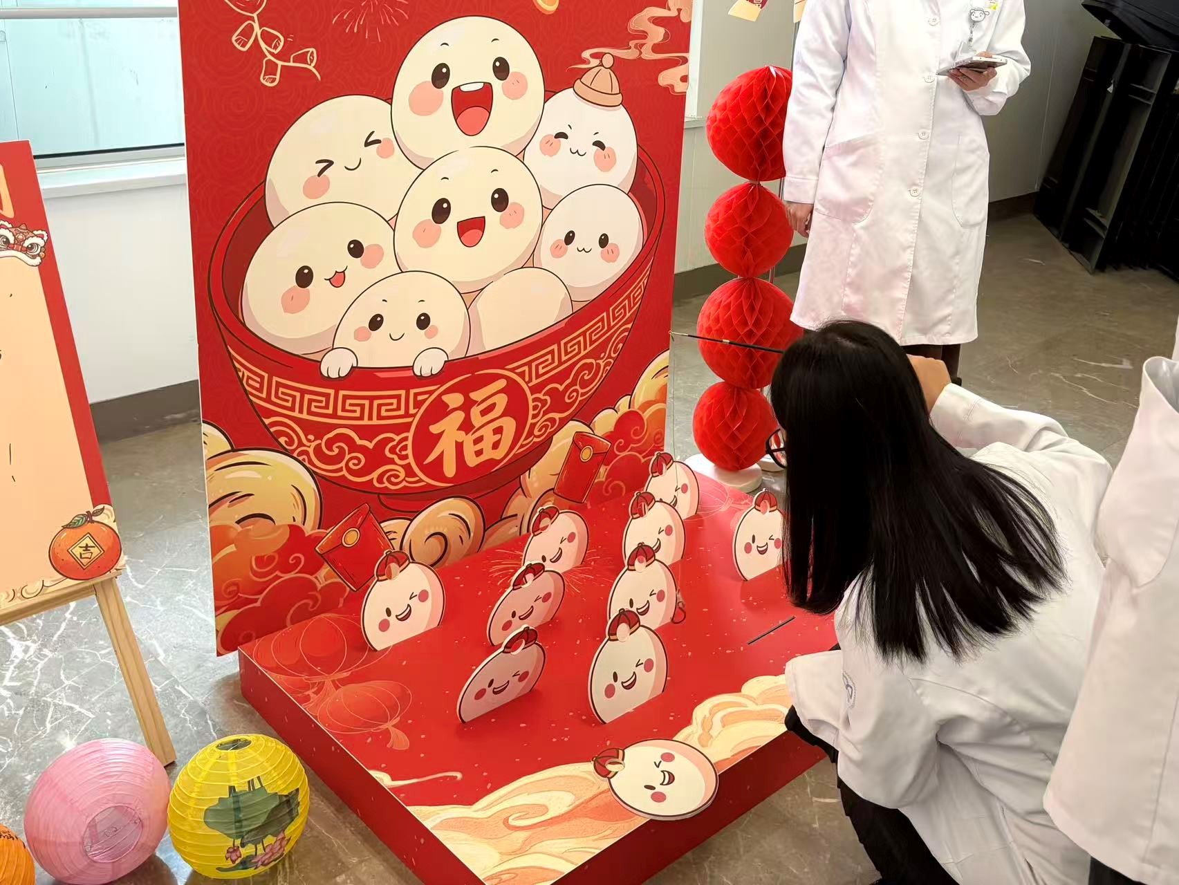 互动游戏区气氛热烈,“欢乐钓汤圆”与“元宵夹汤圆”两项趣味游戏为职工们带来别样的节庆乐趣——在规定的距离与时间内凝神完成挑战,大家全神贯注、兴致盎然。现场喝彩与欢笑此起彼伏,在趣味互动中体味节日的喜悦与集体的温暖。